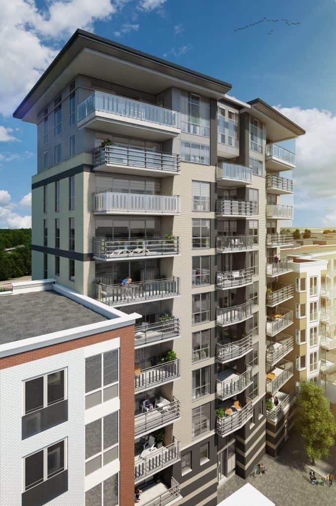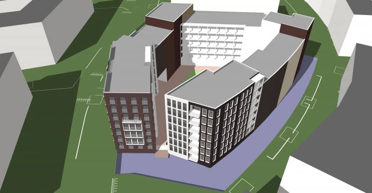 De woongebouwen zijn 3D gemodelleerd in Revit.